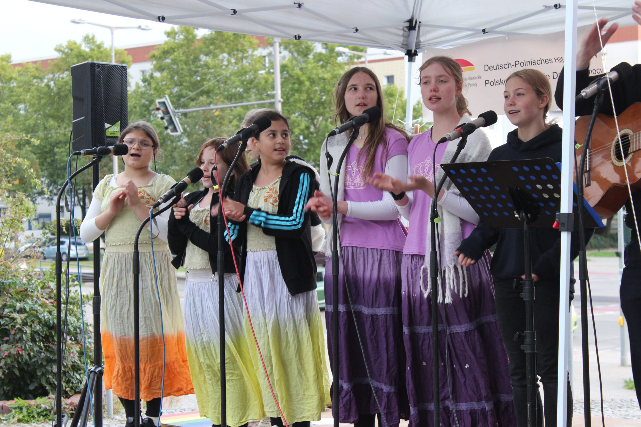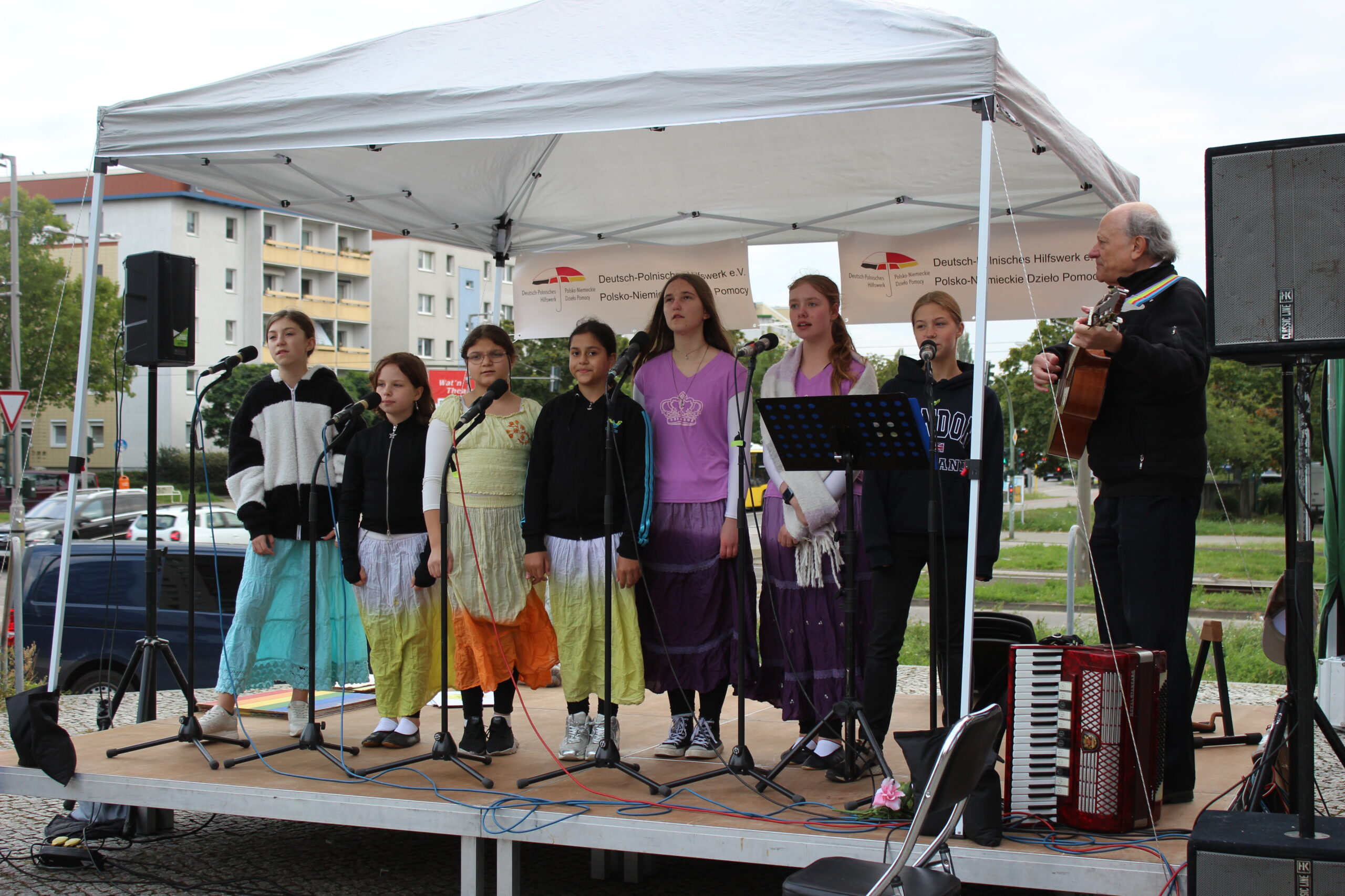 e.V. nahmen wir am 30. September am Kiez-Konzert auf der Bühne auf den Kiez-Terrassen Alte Hellersdorfer Straße teil. Bei kühlem Wetter boten wir mit sieben Chorkindern unser aktuelles Programm dar. Dabei konnten wir die leider nur spärlich erschienenen