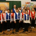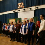 Im zweiten Teil des Bühnenprogramms wurden von Herrn Engling und Herrn Nitzschke gemeinsam Lieder aus den fünf Mitmachprogrammen angestimmt, die der Chor in 25 Jahren von 1995 bis 2019 in Kitas und Schulhorten in Berlin, im Umland und sogar in Bayern dargeboten hatten. Zu Beginn gestalteten die fünf neuen Chorkinder das Medley „Wenn du glücklich bist“, bei dem viele Gäste mitsangen. Auch bei den „Schnadahüpfel’n“, „Meine Oma fährt im Hühnerstall Motorrad“, „Ein kleiner Matrose“, „Wochentage auf dem Markt“und „Mein Hut, der hat drei Ecken“ wurde fröhlich mitgemacht. Große Freude bereitete der „Lindenbaum-Rock“, zu dem alle Chorkinder paarweise Rock’n Roll tanzten. Einen stimmungsvollen Abschluss bildete die „Kinder-Polonaise“, die von Leonie und Lea Sophie angeführt wurde und bei der Chor- und Gästekinder sowie ihren Eltern begeistert durch das FAIR zogen. Danach wurden die sechs Hauptpreise der Tombola überreicht. Eine glückliche Gewinnerin war unser jüngstes Chorkind Joleen. Mit unserem Lied „Auf Wiedersehn“ ging eine beeindruckende Jubiläumsfeier zu Ende.