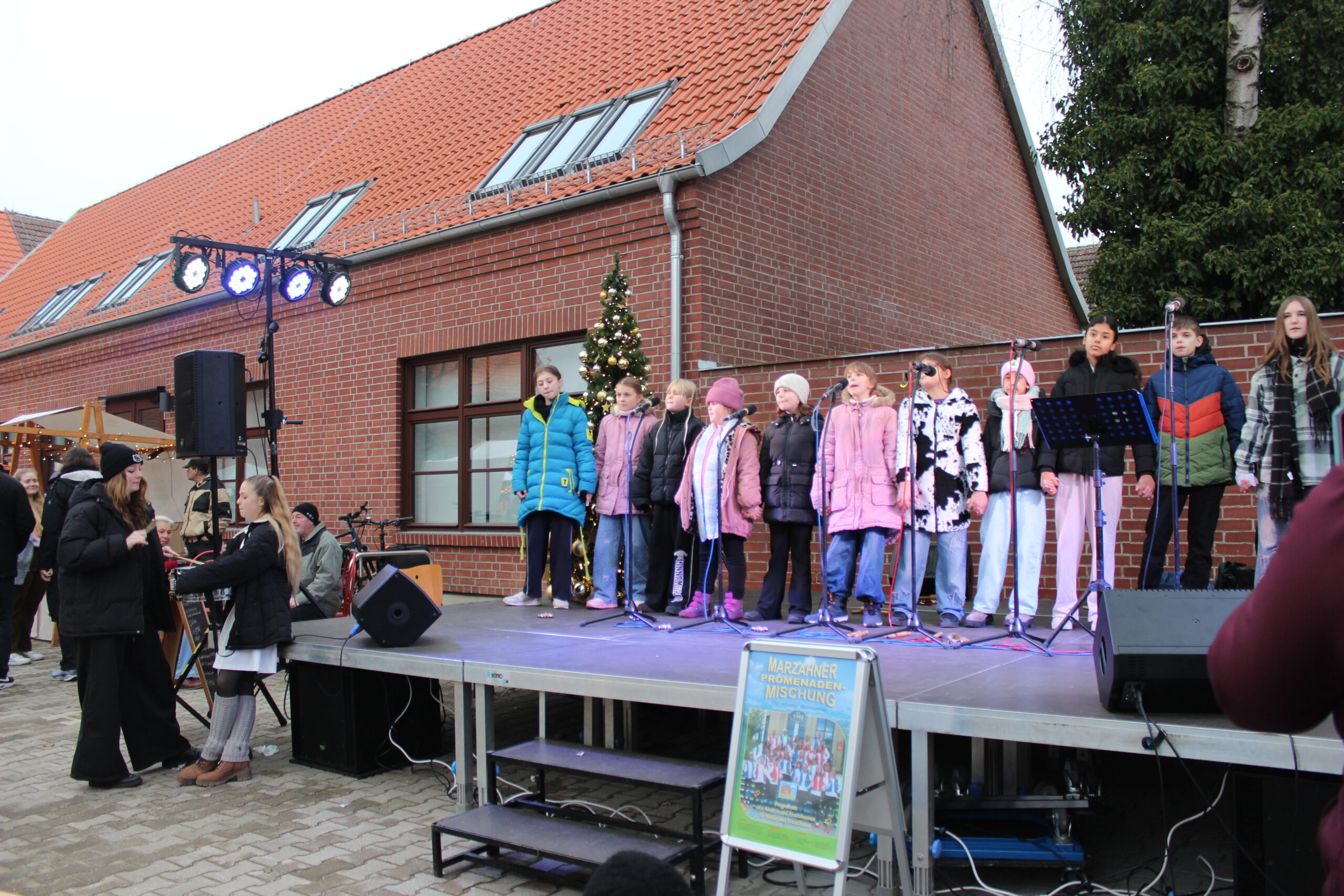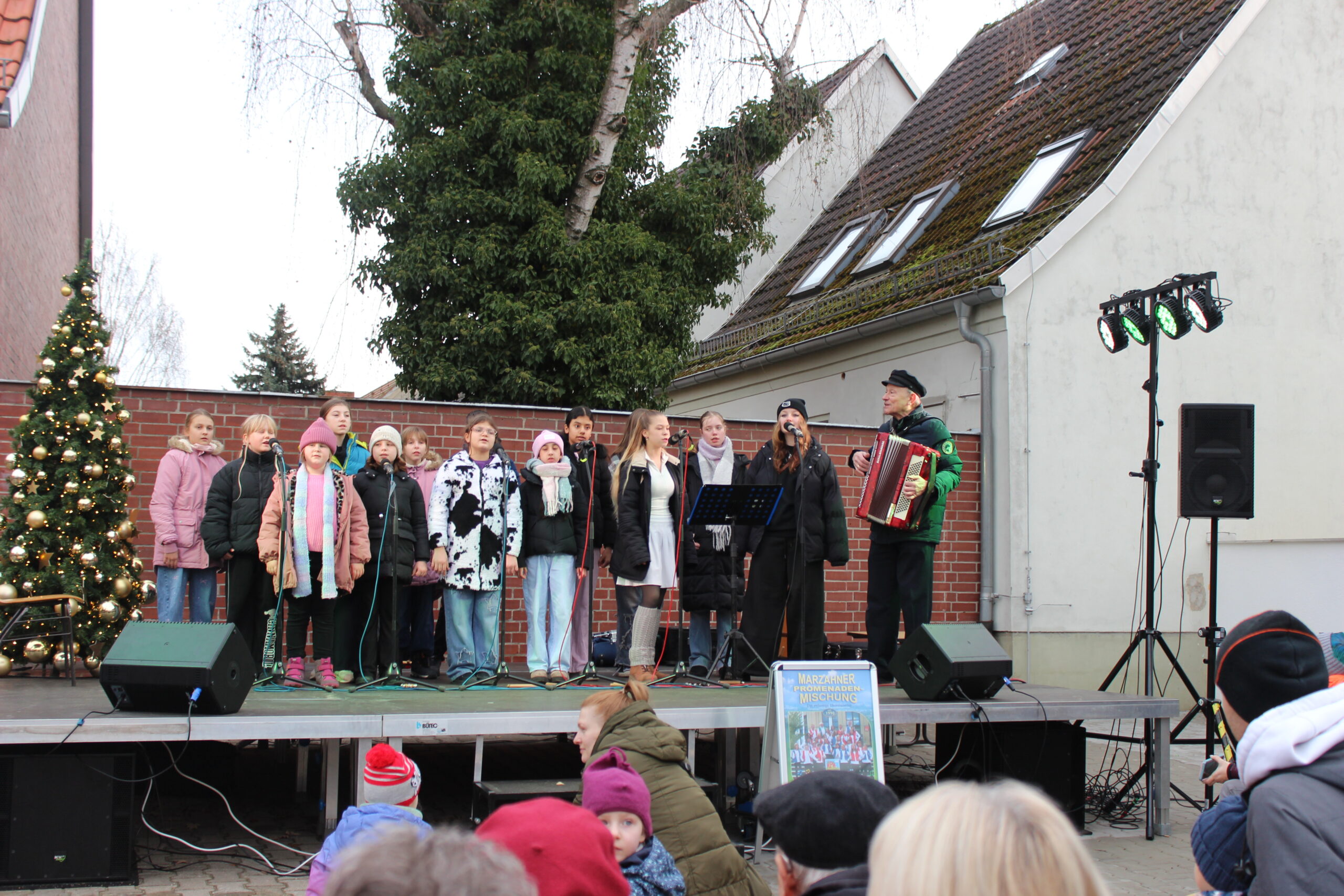 beteiligten wir uns am 30. November am Bühnenprogramm auf dem Hof vom Museumsgut Marzahn im Rahmen des Alt-Marzahner Adventsmarkts. Mit 14 Chorkindern stimmten wir für eine halbe Stunde Lieder unseres Weihnachtsprogramms an, die die zahlreichen