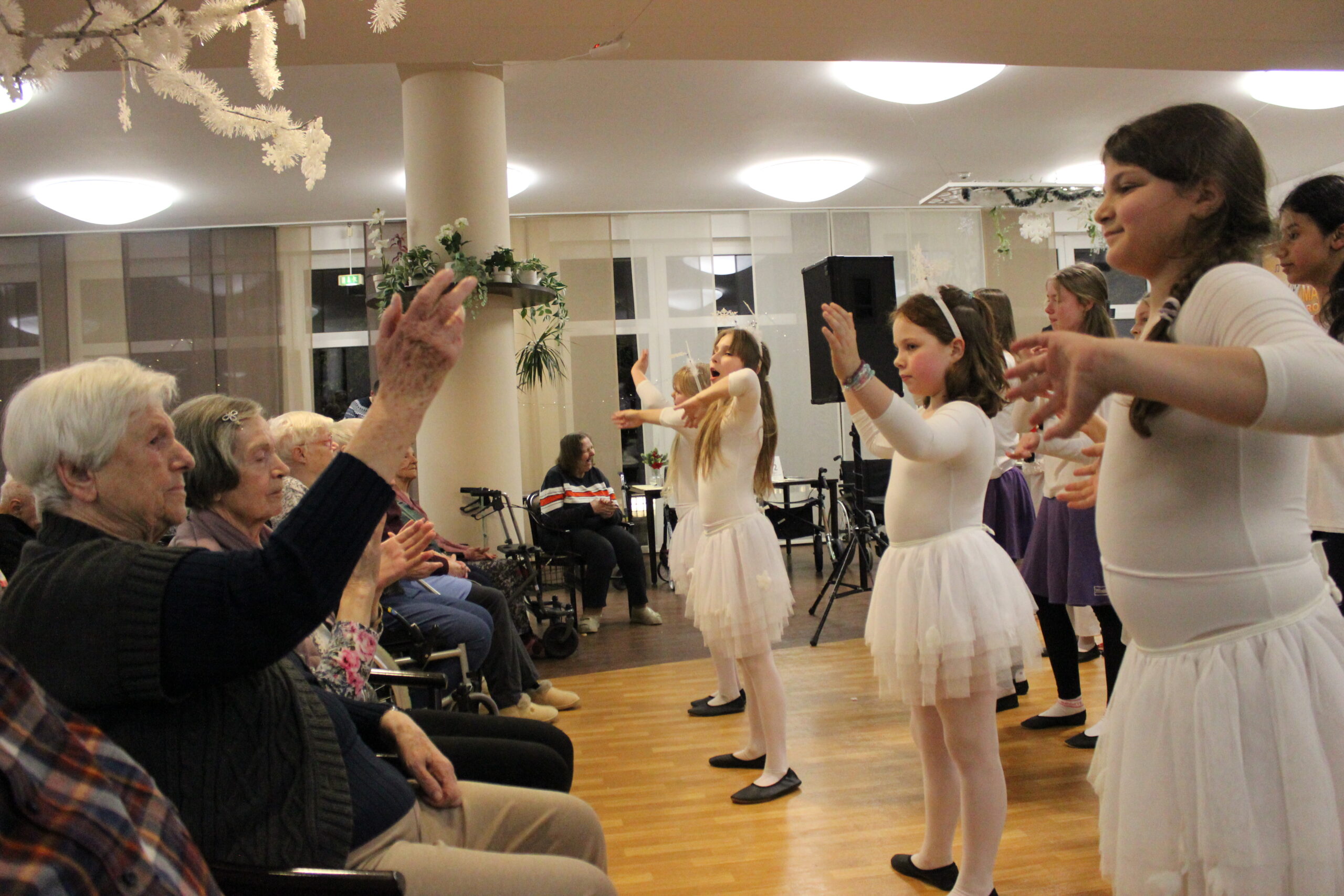 Senioren-Residenz in der Schieritzstrsaße traten wir am 7. Dezember auf Einladung der Pflegedienstleitung mit unserem Weihnachtsprogramm auf. Mit 12 Chorkindern stimmten wir unsere Lieder an, bei denen die über 50 Anwesenden begeistert mitsangen und klatschten.