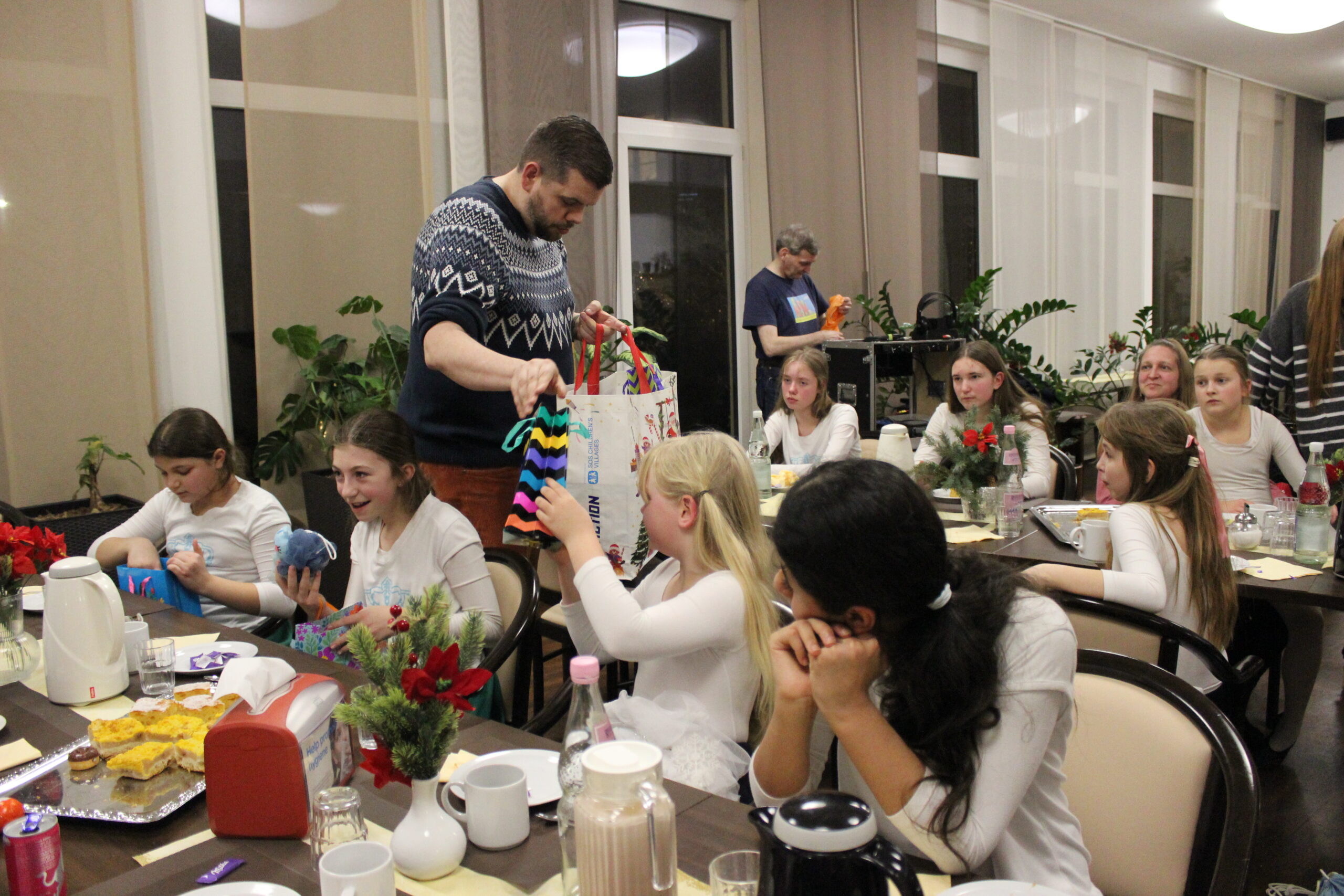 dankte sich die Leiterin Frau Kojder für unsere Darbietungen. Von vielen Heimbewohnern erhielten wir großes Lob für unser Programm. Herr Wagener überreichte allen Chorkindern und Erwachsenen als Dank eine Weihnachtstüte bzw. ein Präsent.