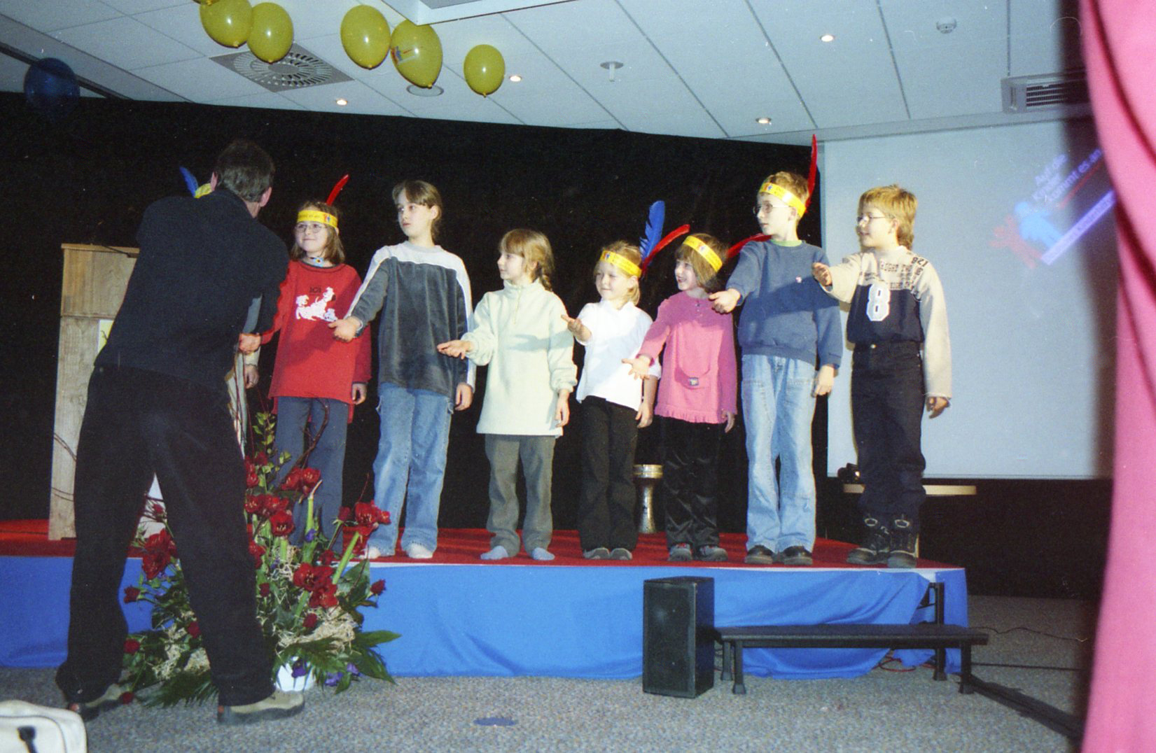 Weltkindertagsfest des Deutschen Kinderhilfswerks nahmen 24 Chorkinder an der Veranstaltung zur Verleihung des Deutschen Kinderkulturpreises und des „Kids Aw@rd 2002“ im neuen Novotel auf der Fischerinsel teil. Jennifer, Nesrine, Maria, Juliane und Marcel hatten viel Spaß beim Geräuschespiel.