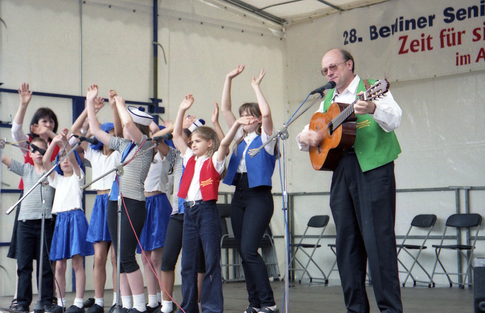 Zum zweiten Mal boten wir auf Anfrage des Berliner Arbeitskreises Senioren zur Eröffnung der Seniorenwoche auf der Bühne auf dem Alexanderplatz vor Hunderten Zuschauern in kleiner Besetzung Ausschnitte unseres aktuellen Programms dar.