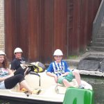zurück. Dort wurde unser Schiff wieder heruntergelassen. Bei der Ausfahrt gab es wieder Wasserspritzer. Diesmal hatten einige einen Regenschirm aufgespannt. Wir drehten noch eine Runde im Unterhafen und gingen nach einer Stunde von Bord. Von dieser