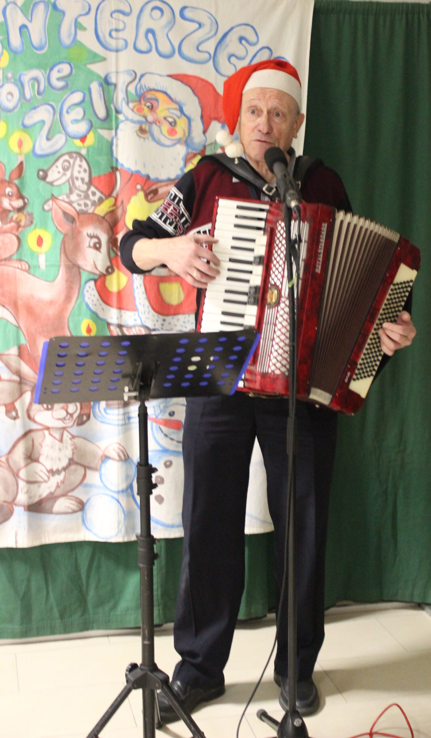 Und Herr Engling singt ganz schrecklich: „Morgen kommt der Weihnachtsmann“,  doch das hört sich wie das Knarren einer Türe an.